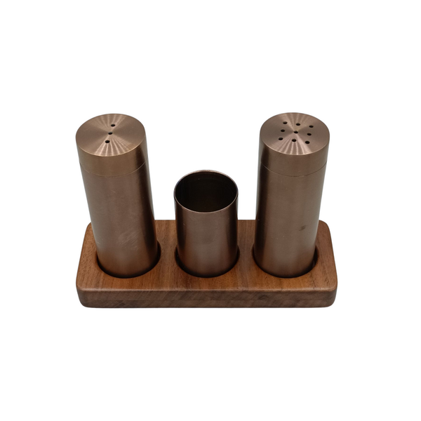 Dikdörtgen tuzluk seti(PVD Bakır): Cilalı Ceviz Stand