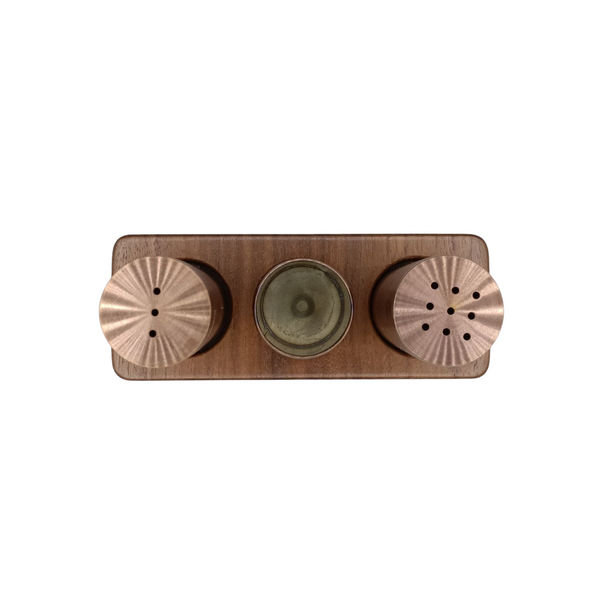 Dikdörtgen tuzluk seti(PVD Bakır): Yağlı ceviz dikdörtgen tuzluk seti