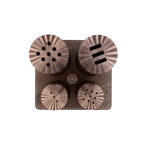 4'lü Simetrik Baharatlık(PVD Bakır): Doğal yağlı Ceviz Stand