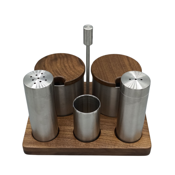 5'li Restoran Baharatlık(Mat Paslanmaz): Doğal yağlı Ceviz Stand