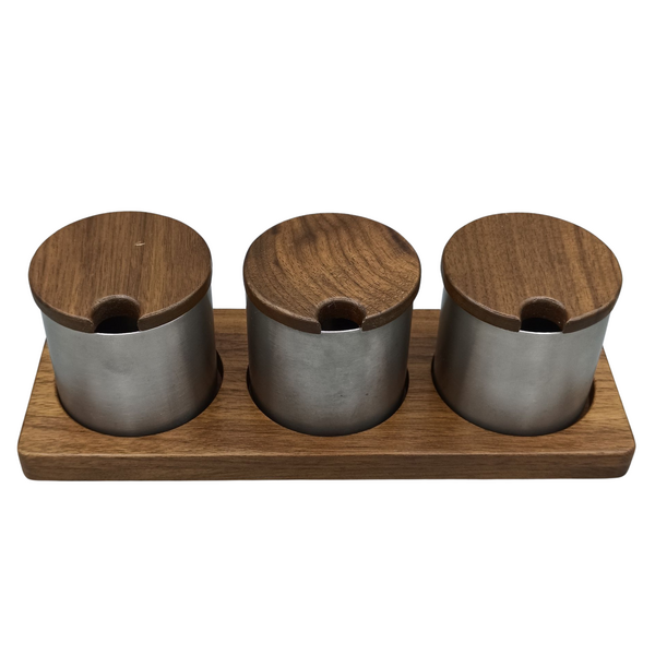 3'lü Baharat Seti(Mat Paslanmaz): Doğal yağlı Ceviz Stand