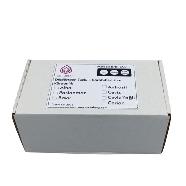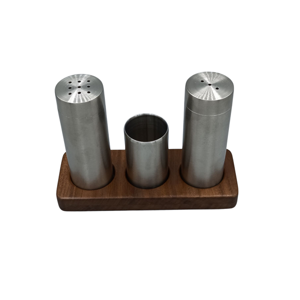 Dikdörtgen tuzluk seti(Mat Paslanmaz): Cilalı Ceviz Stand