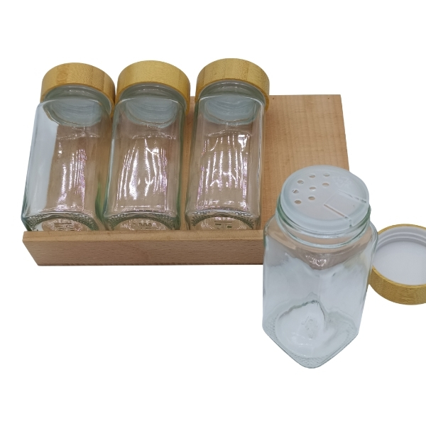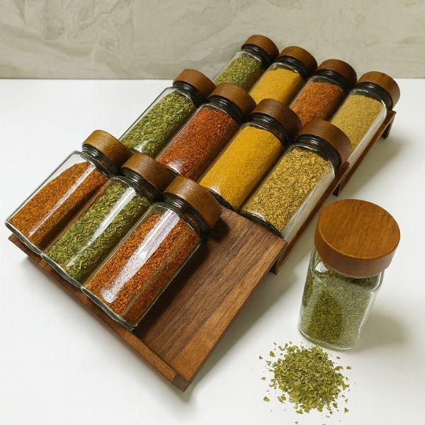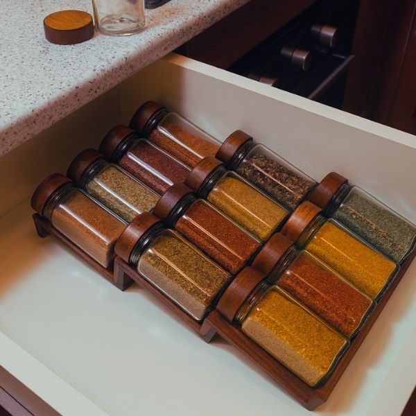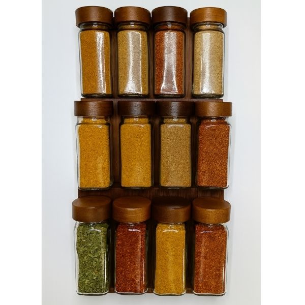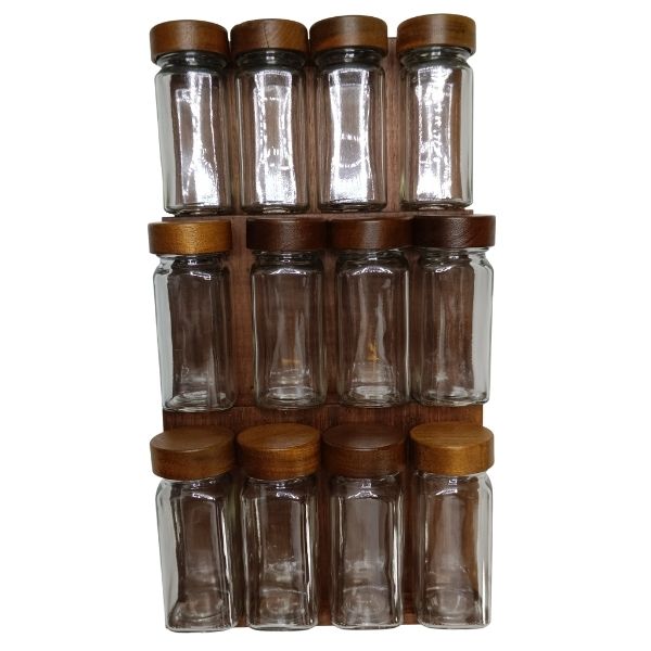 Modüler merdiven baharatlık (kare kavanoz): Ceviz modüler merdiven baharatlık