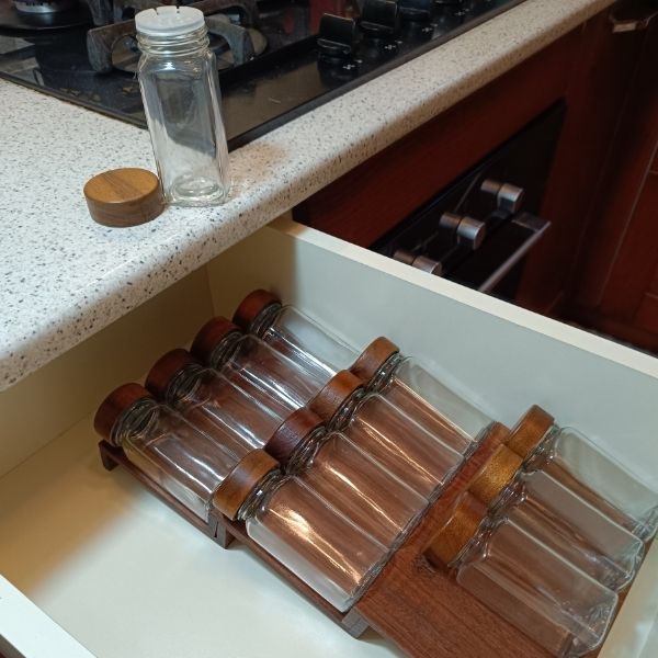 Merdiven basamaklı baharat modülü, baharat kavanozlarını kolayca düzenlemenizi ve aradığınızı hemen bulmanızı kolaylaştırır. Modüler tasarımı sayesinde, çekmecenizde ihtiyacınız olan sayıda kavanozu kullanabilirsiniz. Daha fazla baharat kavanozu isterseniz mevcut olana bir veya birkaç modül daha ekl ...Devamını oku
