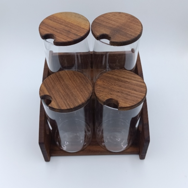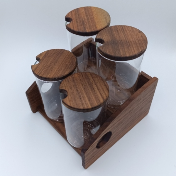 Yeni tezgah üstü baharatlık modelinde, ceviz ağacının eşsiz desenleri kaliteyi en üst seviyede yansıtıyor. Sürekli kullandığınız baharatlar cam kavanoz sayesinde her zaman taze ve elinizin altında olsun. Bu model, 4 kavanoz kapasiteli versiyondur. Bu baharatlığın tasarımına ve ölçüsüne uygun kavanozlar, 250 ml, 200ml veya 150 ml hacimlidir. Tezgah veya masa üstünde kullanabileceğiniz bu baharat seti en üst kalitede işçilik ve tasarım detaylarına sahiptir. Doğal yağ kullanılan ahşap baharatlık, fonksiyonel ve keyifli bir kullanım vadediyor.