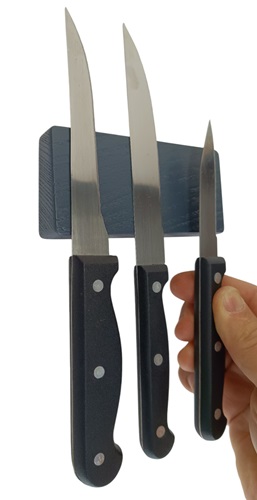 Ağaç Türü: Ceviz – Lüks mobilyalarda tercih edilen dayanıklı ve karakterli bir ağaç Cila: Solvent bazlı cila ile korunmuş yüzey Boyut: Genişlik 12 cm x Derinlik 1,5-2,2 cm x Yükseklik 5,5 cm Bıçak Kapasitesi: 3 adet Montaj: Delmeden monte edilir – güçlü çift taraflı bant ürünle birlikte gelir Mıknatıs Özelliği: Neodyum mıknatıs – doğadaki en güçlü mıknatıs türü