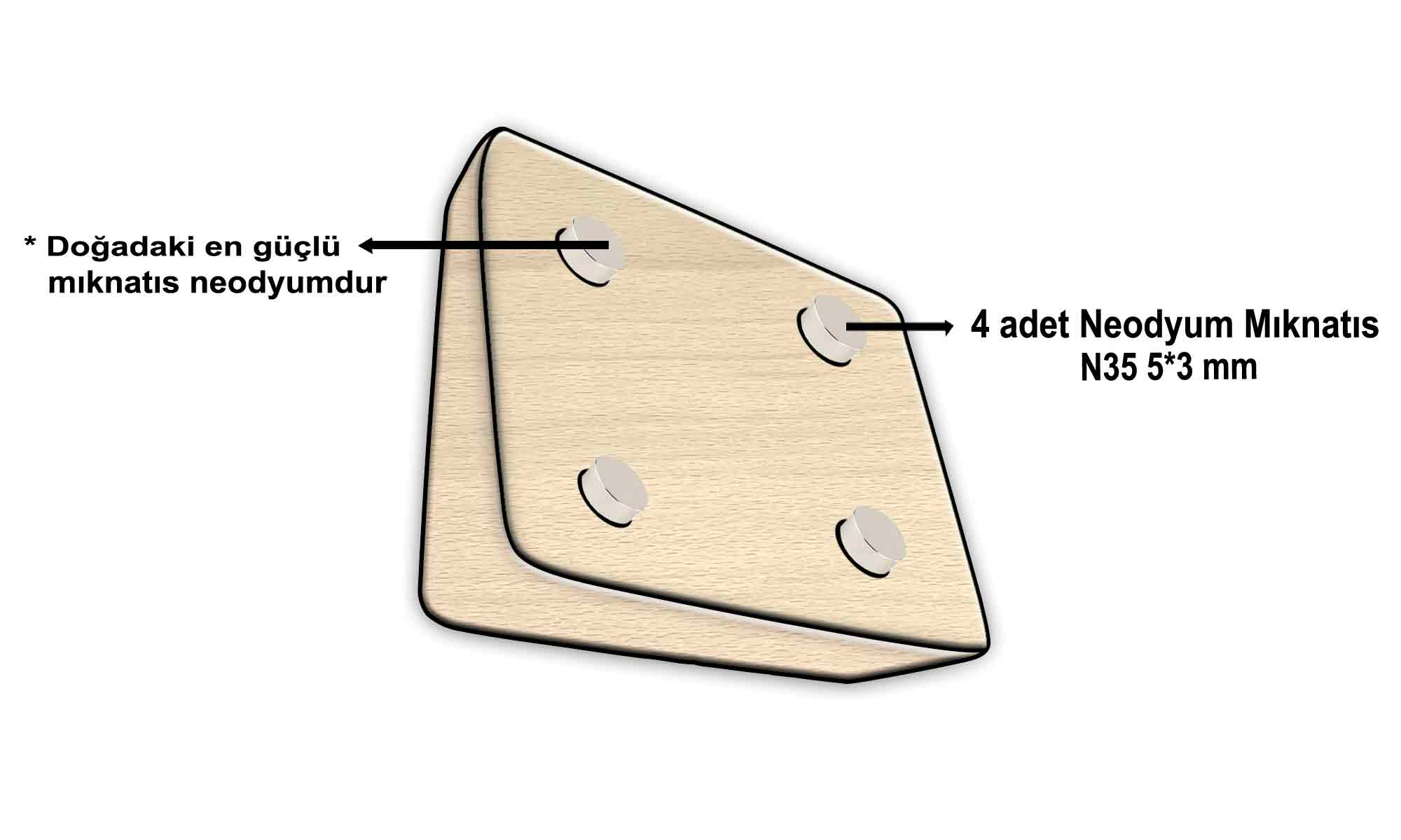Amerikan cilasıyla boyanmış antrasit renkli dişbudak ağacı, yüzeydeki tellenmiş dokularıyla ahşabın estetik ruhunu modern çizgilerle birleştiriyor. %100 el yapımı bu modelde de 4 adet güçlü neodyum mıknatıs kullanılmıştır. Modern tasarım severlerin vazgeçilmezi olacak bir model.