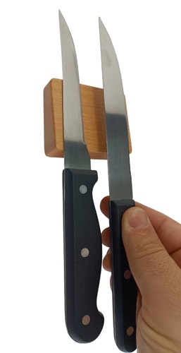 Ağaç Türü: Kayın – Sert, dayanıklı ve homojen yapısıyla bilinir Cila: Solvent bazlı cila ile yüzey koruması sağlanmıştır Boyut: Genişlik 7 cm x Derinlik 1,5-2,2 cm x Yükseklik 5,5 cm Bıçak Kapasitesi: 2 adet Montaj: Aletsiz ve deliksiz montaj – çift taraflı bant dahildir Mıknatıs Özelliği: 4 adet 8x5 mm neodyum mıknatıs içerir