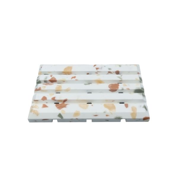 Banyonuzda kaliteyi, hijyeni ve modern şıklığı bir araya getiren beyaz terazzo akrilik sabunluk, dekoratif renk seçenekleriyle banyonuza zarif bir dokunuş katar. Lüks banyo sabunluğu arayanlar için estetik ve fonksiyonelliği buluşturur.